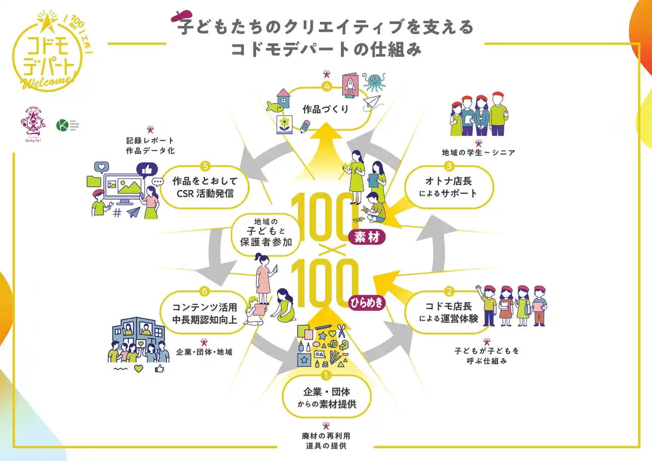 世代や立場を超えて、誰もが自由にクリエイティブになれる共創の場・それがコドモデパートです。 |