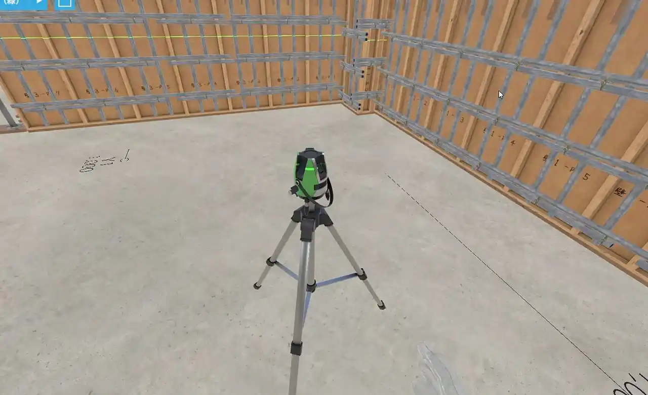 受講者機能:図面確認、型枠の運搬と設置、各種工具の使用を体感できます。 |