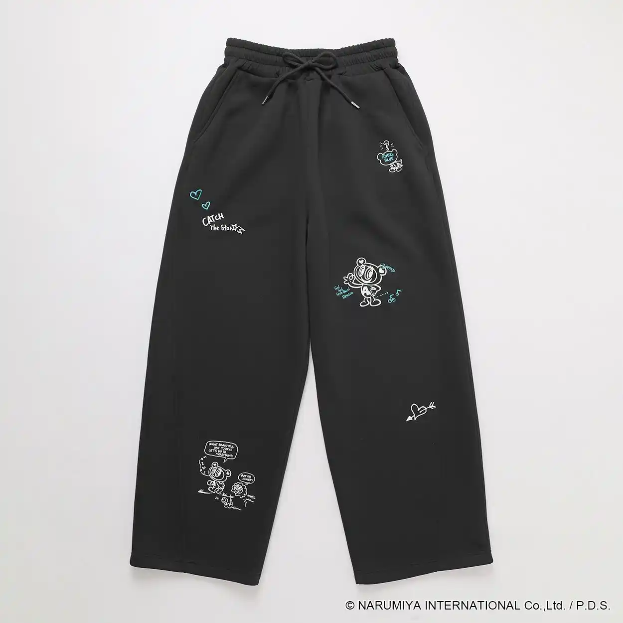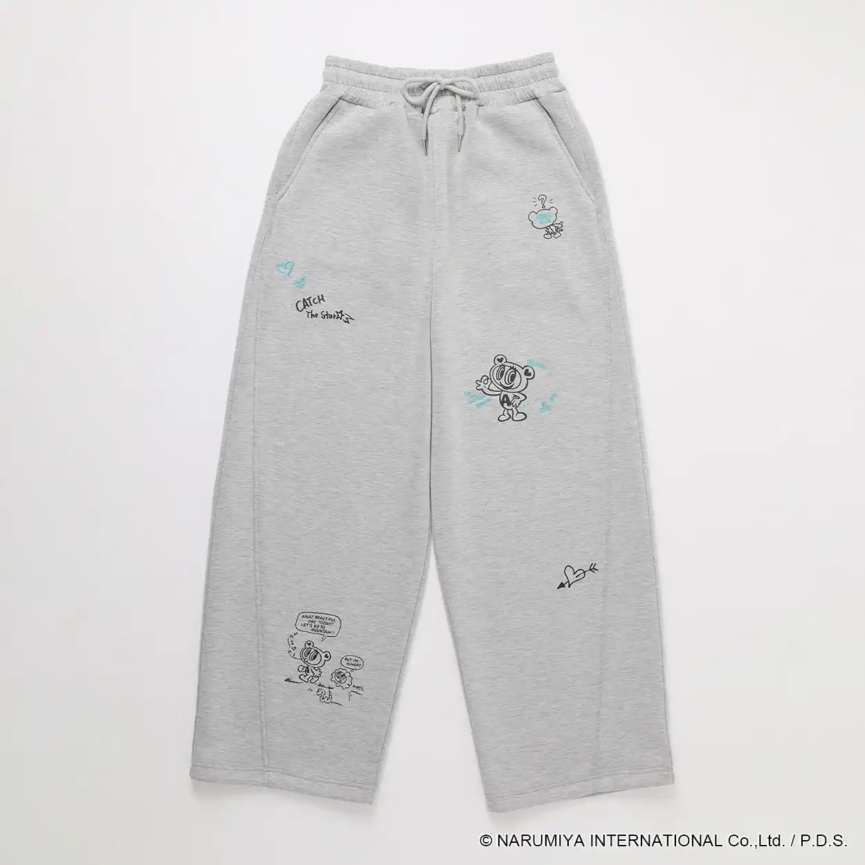 ナカムラくんの落書き風デザインを散りばめたスウェットパンツです。一部には刺繡を施し、立体感のある仕上がりにしています。リラックス感と遊び心を両立したエンジェルブルーらしいアイテムです。