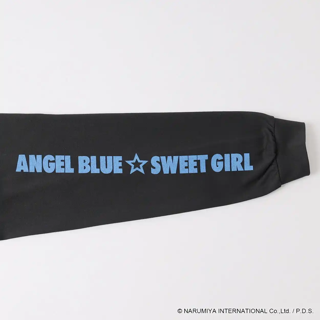 ■エンジェルブルー袖刺繡プリント長袖Tシャツ