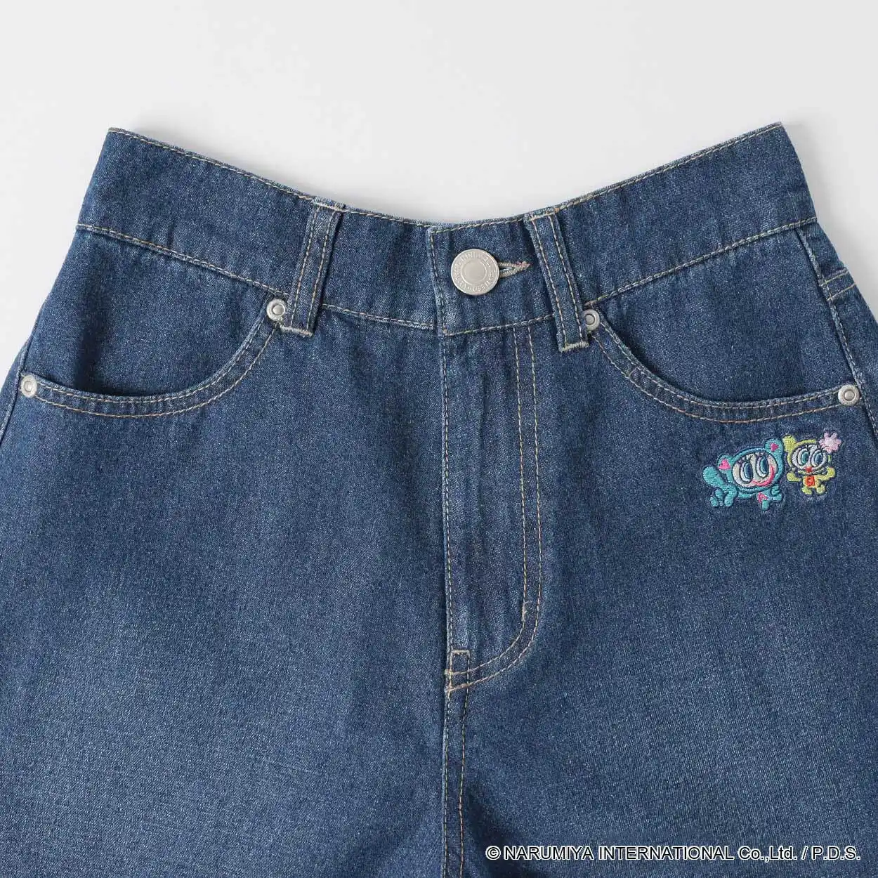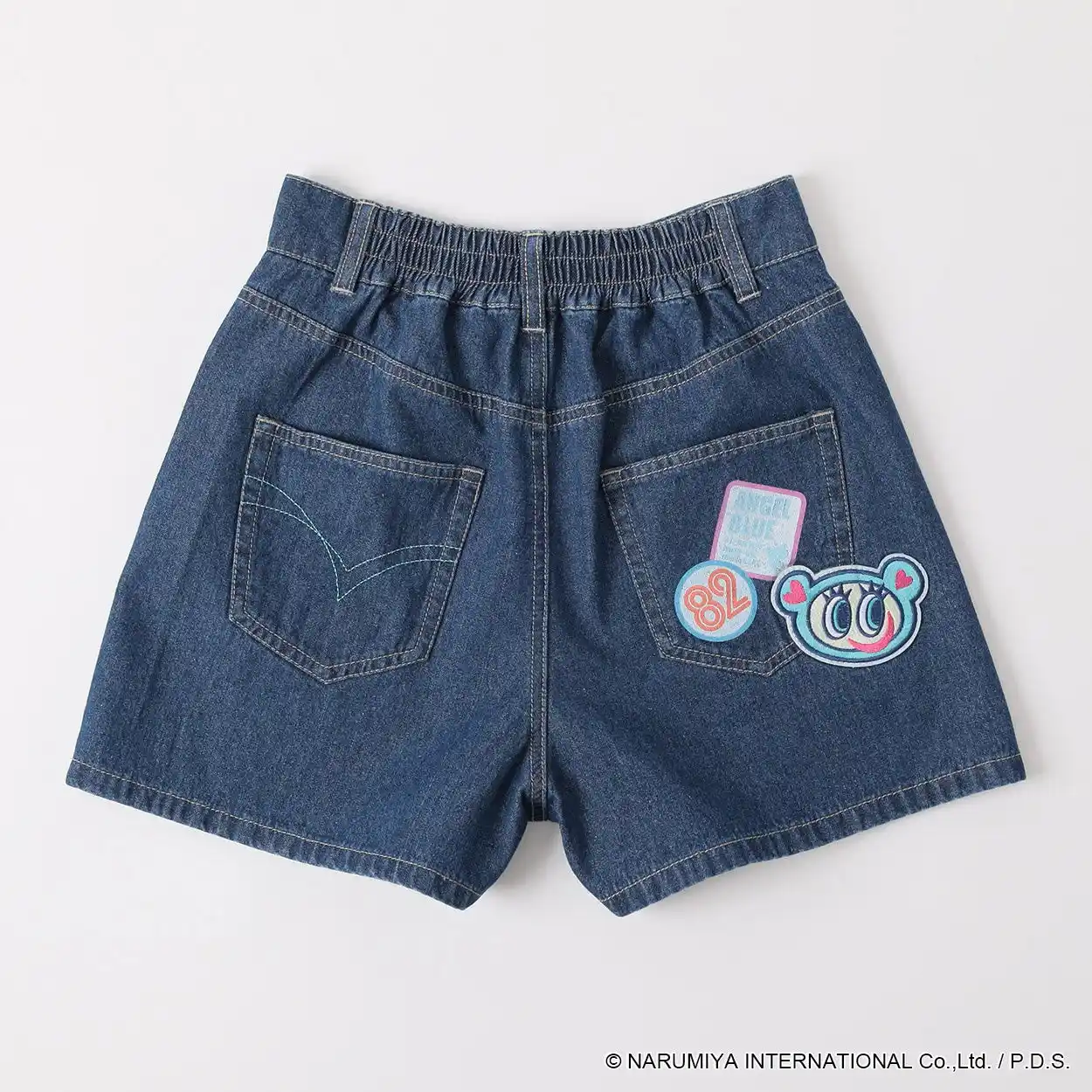 前にはナカムラくんとハナちゃんのワンポイント刺繡、後ろにはワッペン風プリントとナカムラくんのワッペン付きです。360度どこから見てもかわいい、主役級デニムショートパンツです。
