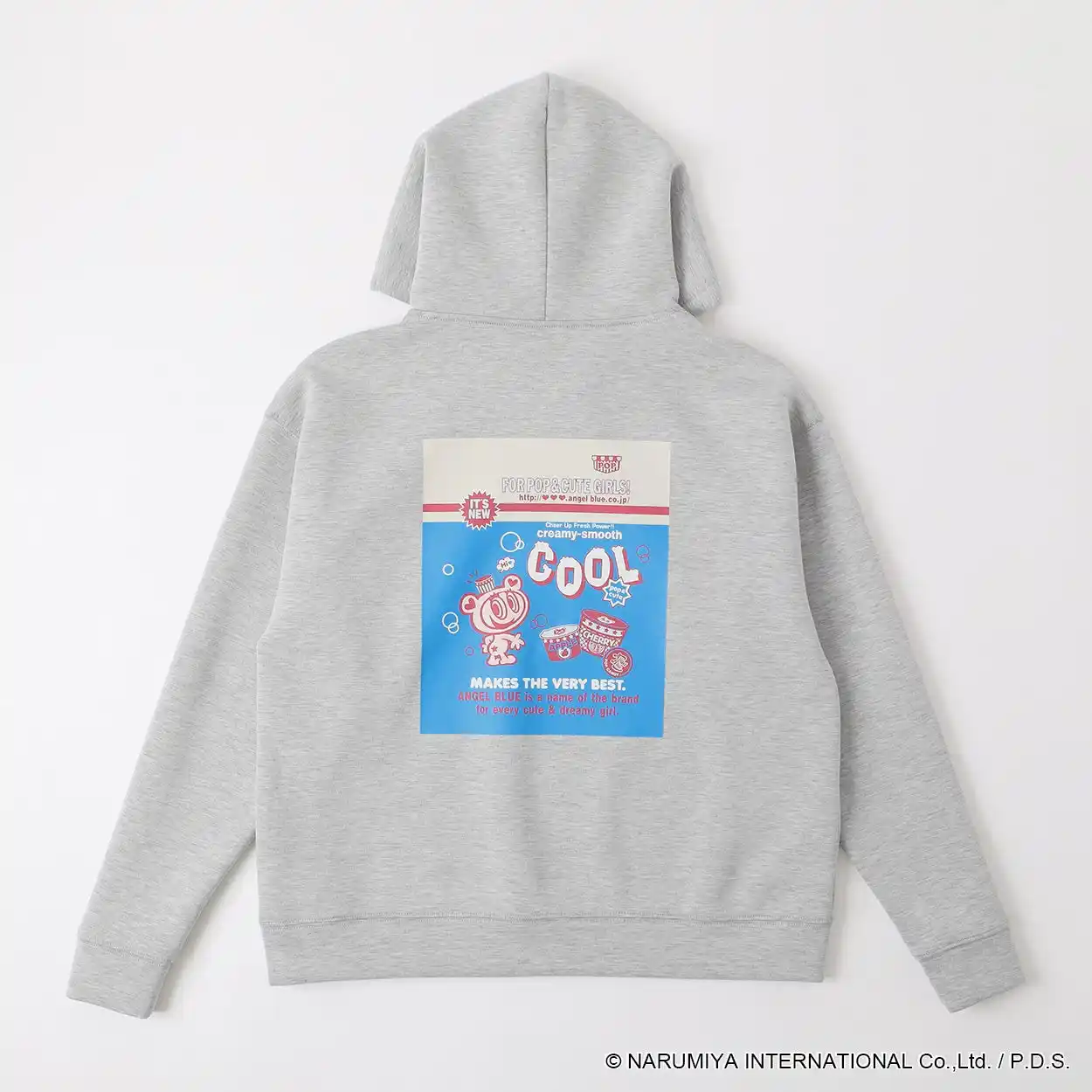 バックにレトロカラーのナカムラくんを大きくプリントしたデザインパーカです。胸元にさりげなくナカムラくんの刺繡が施されています。