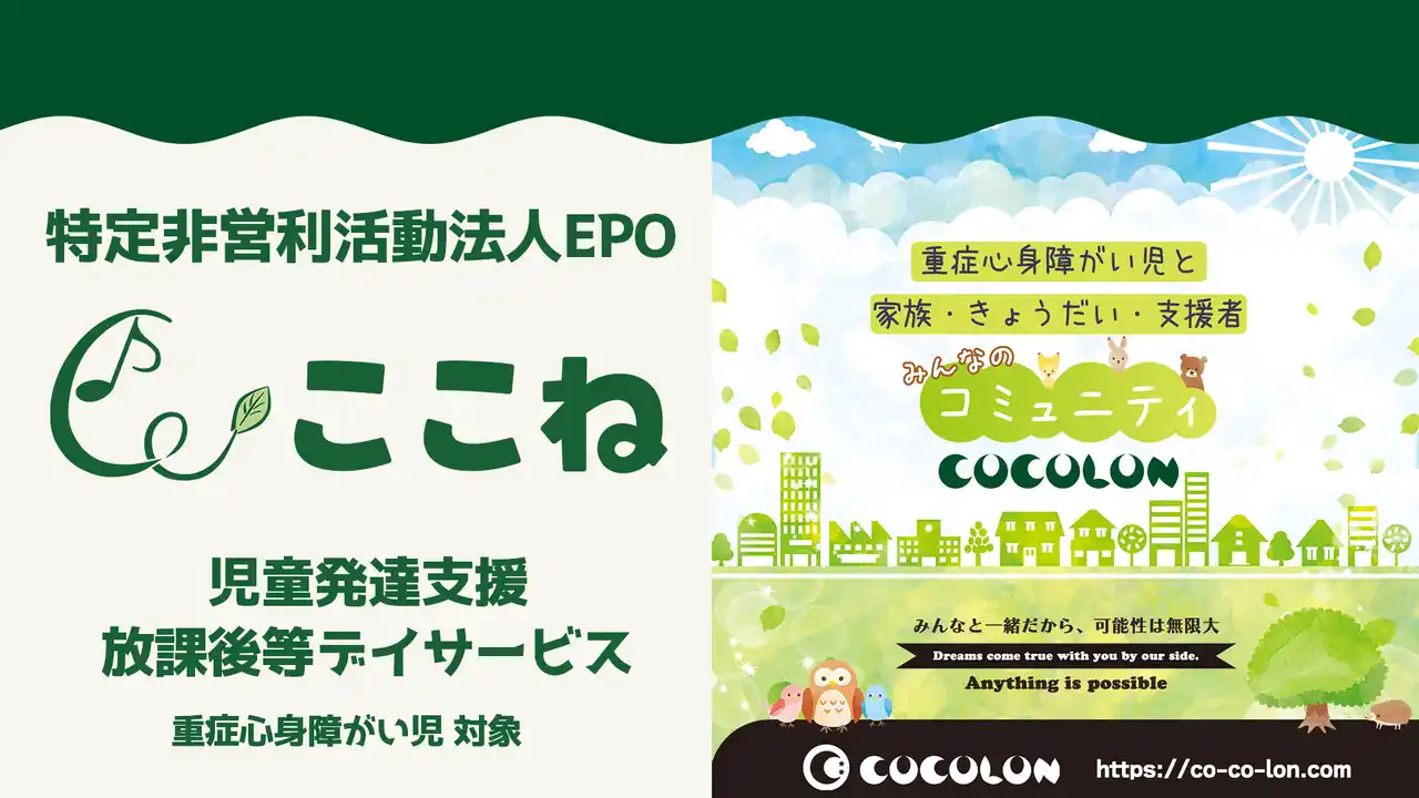 | 特定非営利活動法人EPOは、重症心身障がい児を対象とした通所支援施設「ここね」(児童発達支援/放課後等デイサービス)を東京都足立区と江戸川区で4事業所運営しています。 | ||||||||||||