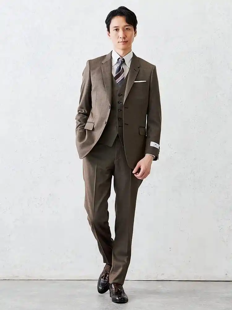 本コレクションは、ビジネスシーンとカジュアルシーンの垣根を越えた新しいスタイルを提案します。ポリエステル70%・ウール30%の特殊素材を採用し、デニムの風合いを持ちながらスーツとしての品格と機能性を兼ね備えています。デニムライクな織り目と縦落ち感のある素材感が特徴で、カジュアルさと上品さを両立。ベージュ、カーキ、ブルーの3色展開で、ビジネスカジュアルからセミフォーマルまで幅広いシーンに対応します。 |
