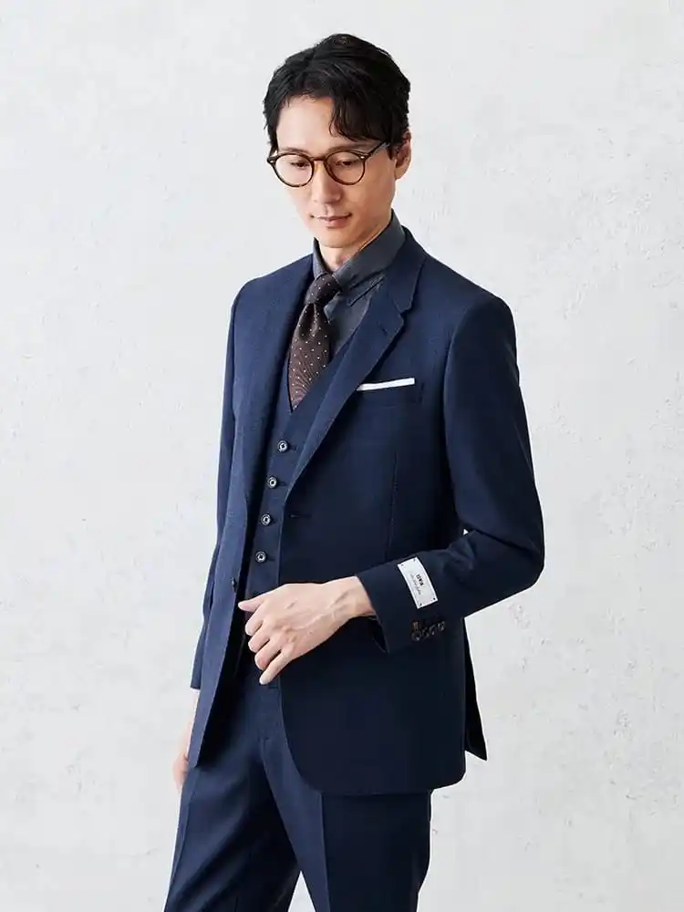 EDWINのデニム製造技術とP.S.FAのスーツ製造技術を融合させた本格仕様が特徴です。ジャケットは縫い代配色パイピングやデニムカラーの2トーン裏地配色を採用し、スーツライクなAMFステッチと衿毛芯仕様で美しいシルエットを実現。パンツはウエストサイズお直し可能な後中心帯割り仕様で、テーパードシルエットながらも幅広い体型に対応。デニムらしい金茶カン留め仕様がアクセントになっています。ベストも含めた3ピーススタイルで、様々な着こなしが可能です。A体、AB体をベースにしたサイズ設計により、幅広いお客様に対応しています。 |