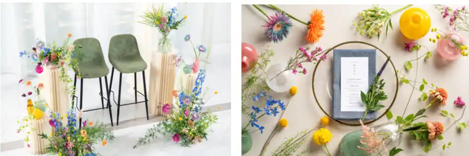 このような現状を踏まえ、花の多様性保全や生産者の未来に繋がる取り組みとして誕生したのが、新スタイリングプラン「季綴」です。「季綴」では、国内で生産するその時々の旬の花からカップルが好みの花を選び、高いスキルを持ったフラワーコーディネーターが唯一無二のアレンジを提案いたします。 |