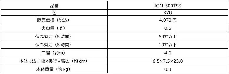 『真空断熱ケータイマグ(JOM-500TSS KYU)』 仕様一覧 |