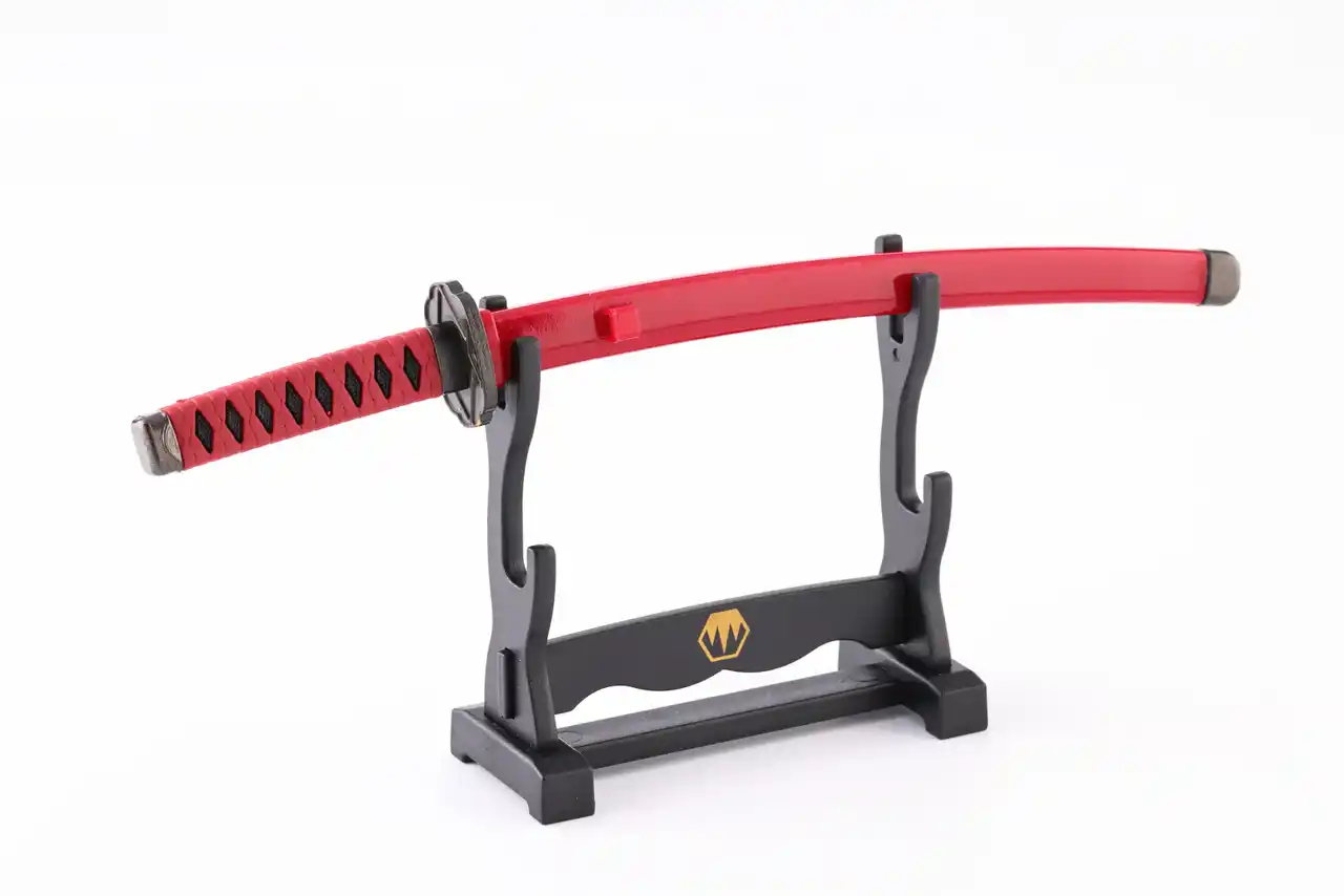 今回の刀剣男士“孫六兼元(まごろくかねもと)”のベースとなる日本刀は、室町時代後期に岐阜県関市で活躍した刀工・孫六兼元が制作し、特に二代目兼元は独自の刃紋“三本杉”で知られ、切れ味鋭い日本刀を世に産み出してきました。今回はゲームの孫六兼元イラストや設定を参考に、それぞれの刃紋の特徴や、鞘や鍔の色や形状など細部の表現にこだわり制作いたしました。(※一部色味や柄が異なる部分があります)