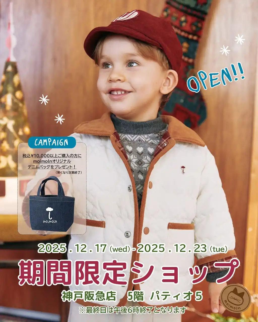 ベビー・キッズ服ブランドを展開するハンセドリームジャパン株式会社(所在地:東京都新宿区、代表取締役:任 東煥)は、日本国内に約20店舗と拡大を遂げている韓国のベビー服トップブランド「モイモルン」の期間限定ショップを、2025年12月17日(水)より「神戸阪急」にオープンいたします。 |