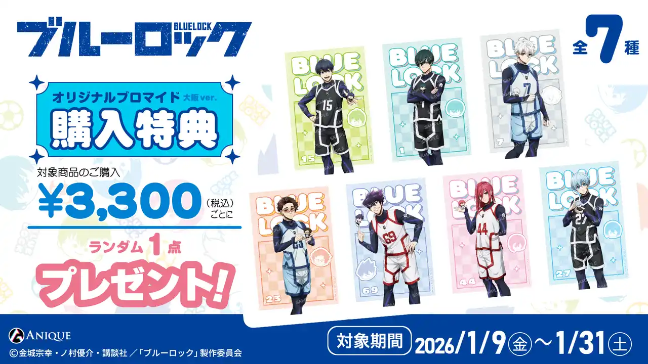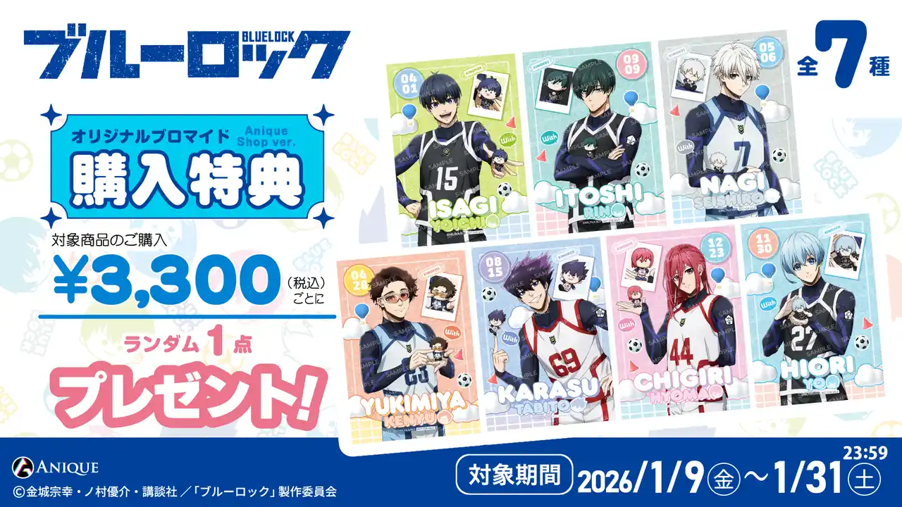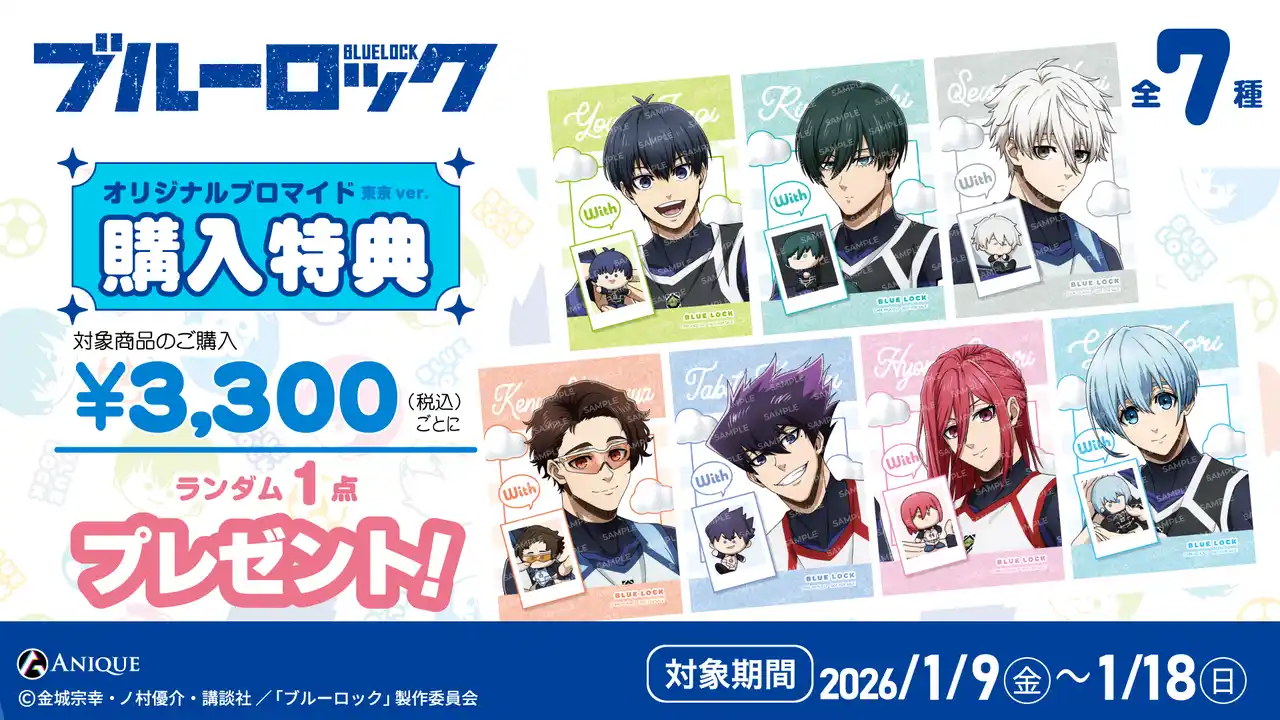 Anique株式会社(本社:東京都千代田区、代表取締役:笠井高秀)は、TVアニメ『ブルーロック』より、自立型ぬいぐるみフィギュアシリーズ "KINOKOS(キノコス)"といっしょに楽しめる新規描き下ろしイラストを使用した新グッズがPOP UP SHOP「ブルーロック KINOKOSといっしょ」を開催いたします。 |