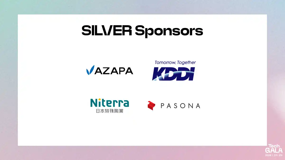 | 本日、TechGALA 2026にご協賛いただく企業第3弾として、PLATINUMスポンサー、GOLDスポンサー、SILVERスポンサーを公開しました。 | |||