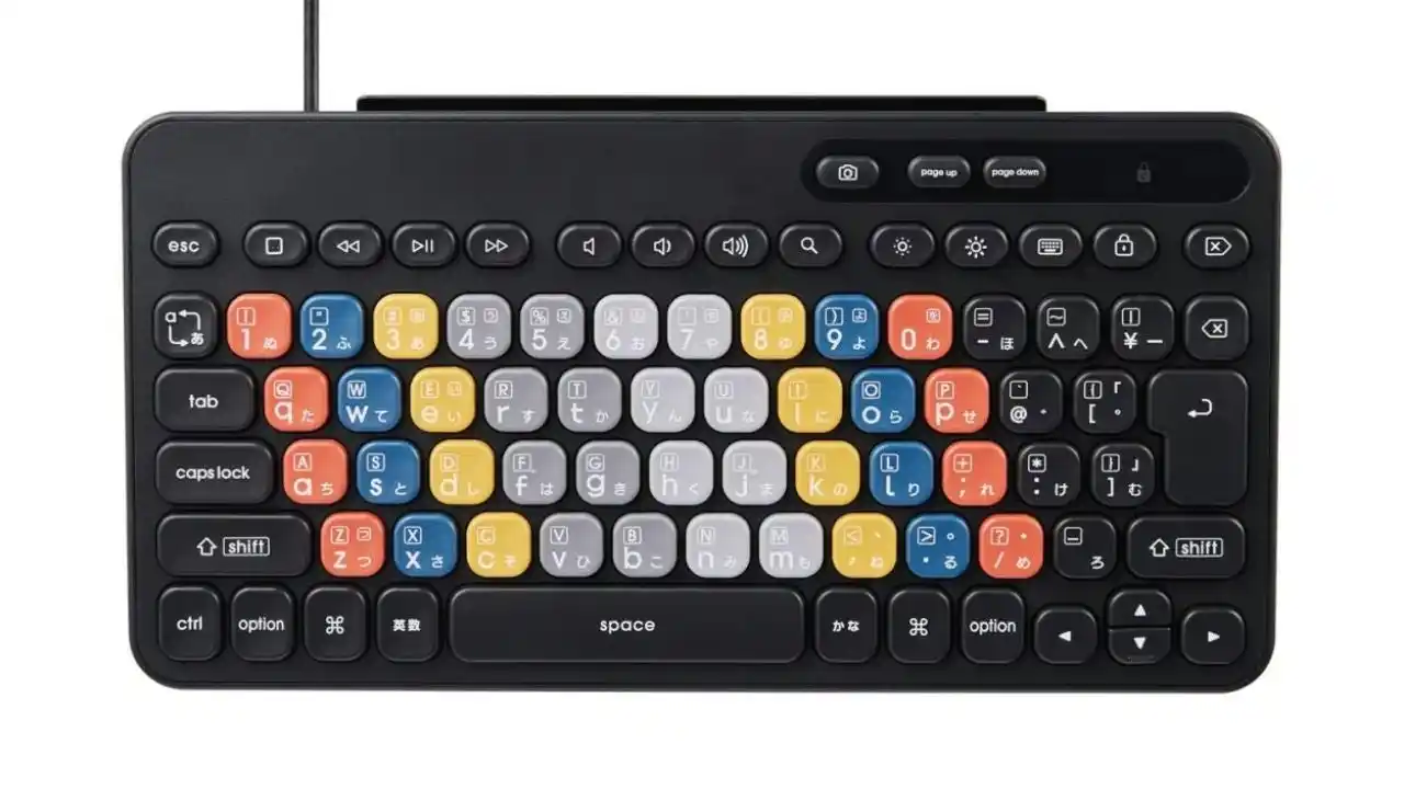 押し間違いによる混乱を避けるため、使用頻度の低い機能を取り除き、よりスムーズにキーボード操作を学習できるよう配慮。プログラミングやタブレット学習に特化した機能を盛り込んだ、独自の日本語配列(JIS)を採用しています。 |