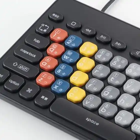 キーを打つ指を覚えやすい配色です。色の判別が苦手な色覚特性のある方でも、色の違いを見分けやすいカラーバランスに調整しています。 |