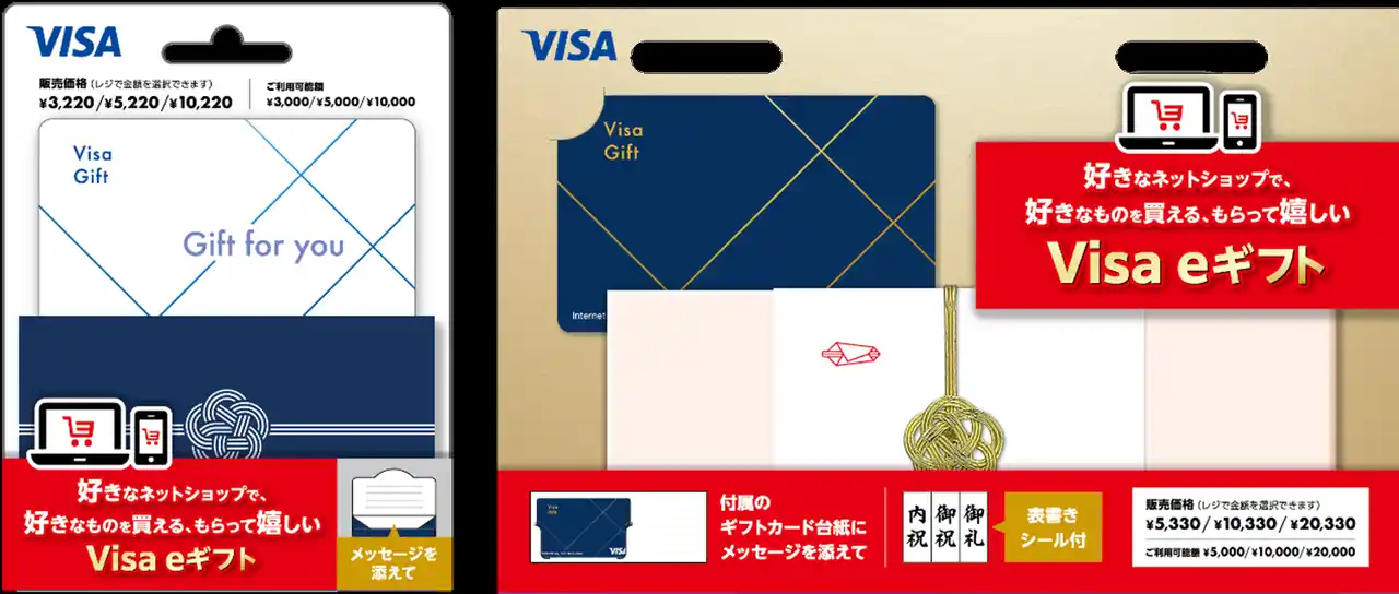 【内容】Visa eギフト(ギフト包装付き/ミニ封筒付き)を購入して応募すると、抽選で100名さまに『Visa eギフト』1万円分のコードが当たる。 |