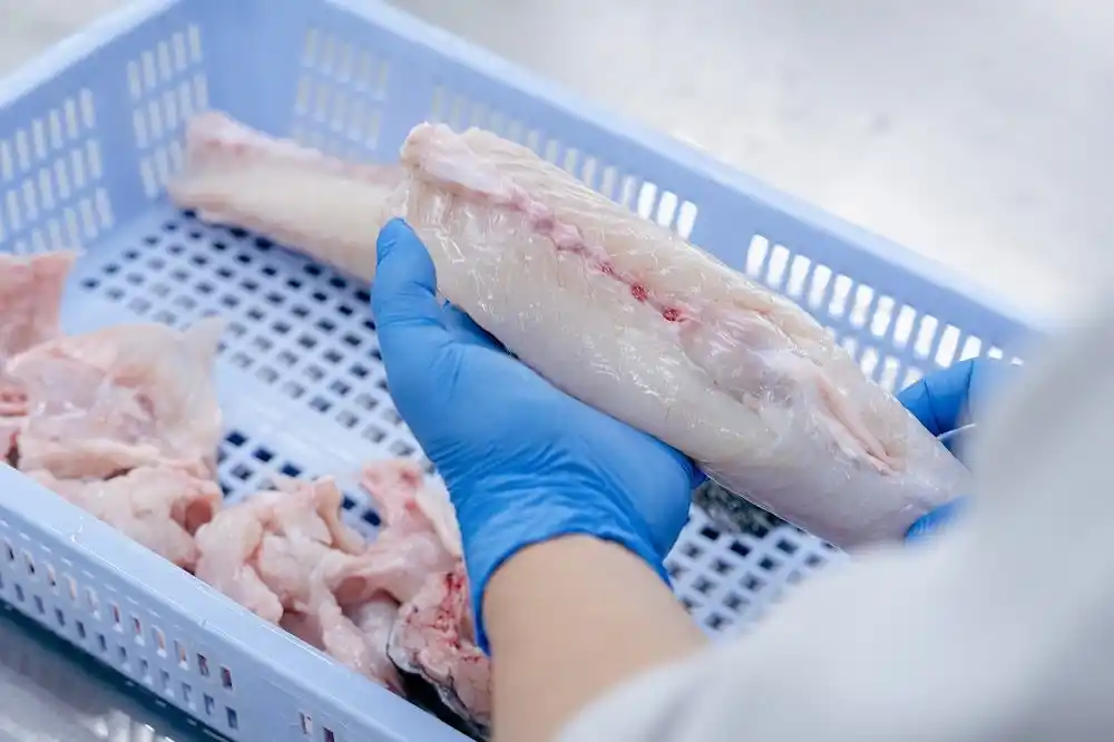 上が3日間熟成したとらふぐの身・下は熟成前 |