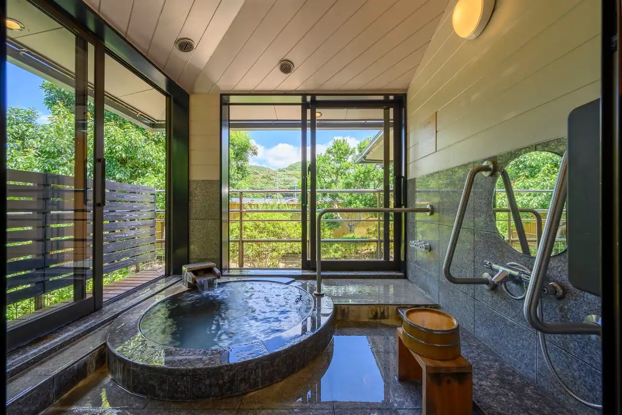 全51室の客室は、和室・和洋室のあるスタンダードタイプの本館、専用クラブラウンジ利用権付き温泉付離れ、和室の露天風呂付客室、わんちゃんとご一緒にお泊りいただける客室など、9種類の客室タイプの中からお客様のご希望に応じてご案内申し上げております。お部屋 |
