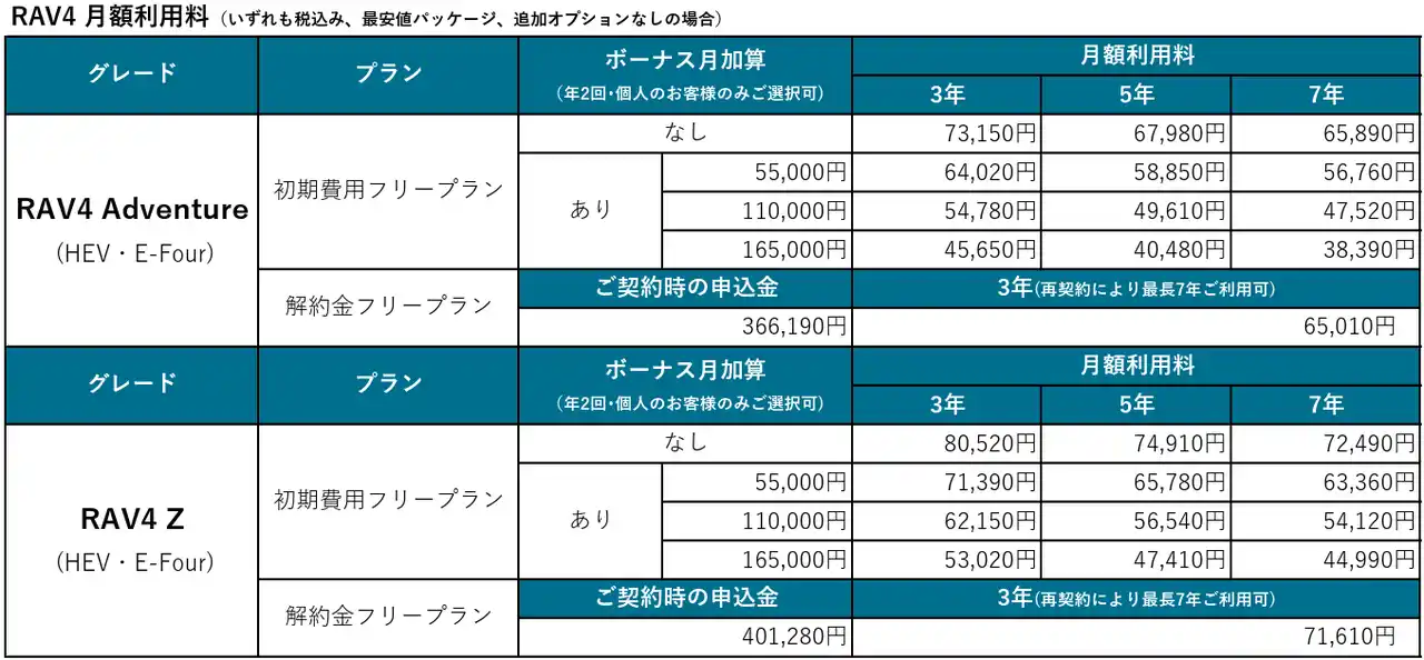 〈詳細はこちら〉https://kinto-jp.com/kinto_one/lineup/toyota/rav4/