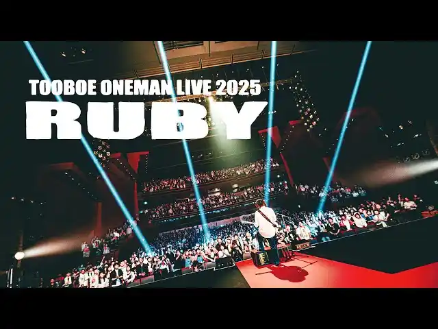 | 2025年6月10日に東京国際フォーラム ホールCにて開催されたTOOBOE ONEMAN LIVE 2025《 RUBY 》は、TOOBOEの自身最大規模のワンマンライブ。いつものバンドメンバーにホーンとストリングスを加えた大編成で、特別な夜となった。今回、ライブ音源として、全21曲をフルで配信リリースが実現した。 | |||||||||