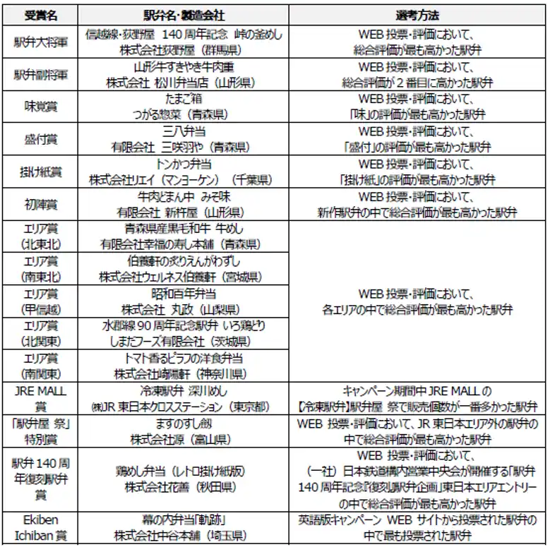 2.受賞商品の紹介 ※詳細については(https://www.jreast.co.jp/ekiben-ajinojin/result/)をご確認ください。 |