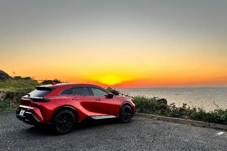 海と空の青に赤いクラウンスポーツが映え、「宿のすべてが最高で、クラウンとともに過ごすいい時間だった」と感想をいただきました。 |
