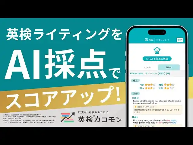 | ※AI採点について公益財団法人 日本英語検定協会による如何なる監修も指導も受けておらず、採点の品質について同協会から認められたものでは一切ございません。 | |||||||||||||