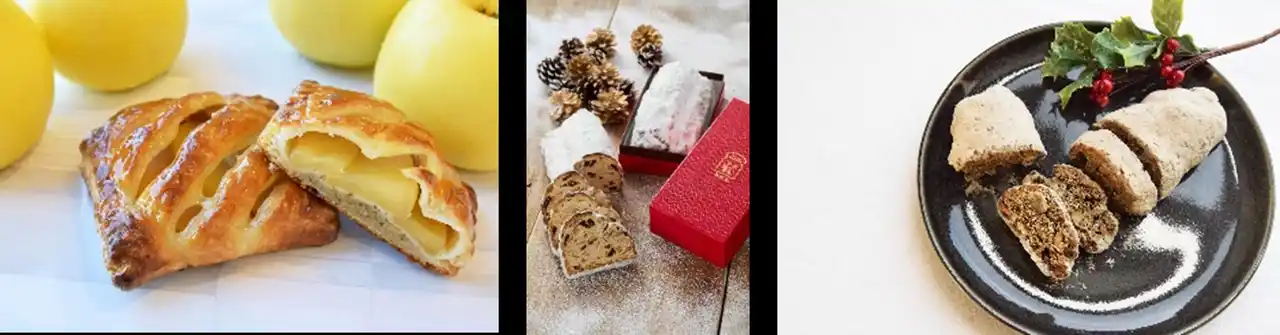 「ブランジェ浅野屋」の代表スイーツの一つでもある、ドライフルーツをふんだんに加えたドイツ伝統のクリスマス菓子『浅野屋クリストシュトレン』や、ほうじ茶生地にオレンジピール、マカダミアナッツ、丹波の黒豆、ほうじ茶チョコ、マロングラッセを練りこんだ『ほうじ茶スティックシュトレン』、さらに長野県産の黄色りんごを贅沢に使った『信州産食べごろりんごのアップルパイ(シナノゴールド)』などをワンプレートに盛り付けた、冬の信州の魅力を楽しみ尽くすことのできるここでしか味わえない一皿です。 |