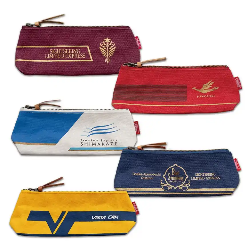 | 今回は近鉄特急の中でも人気の「ひのとり」「30000系ビスタカー」、観光特急「しまかぜ」「青の交響曲(シンフォニー)」「あをによし」のエンブレムやラインなど、特徴的なデザインとカラーリングをモチーフに、日常使いしやすいアイテム「トレインタオル」「トレインペンケース」「トレインパスケース」の3種類のグッズを製作しました。 | ||||||||||||||||
