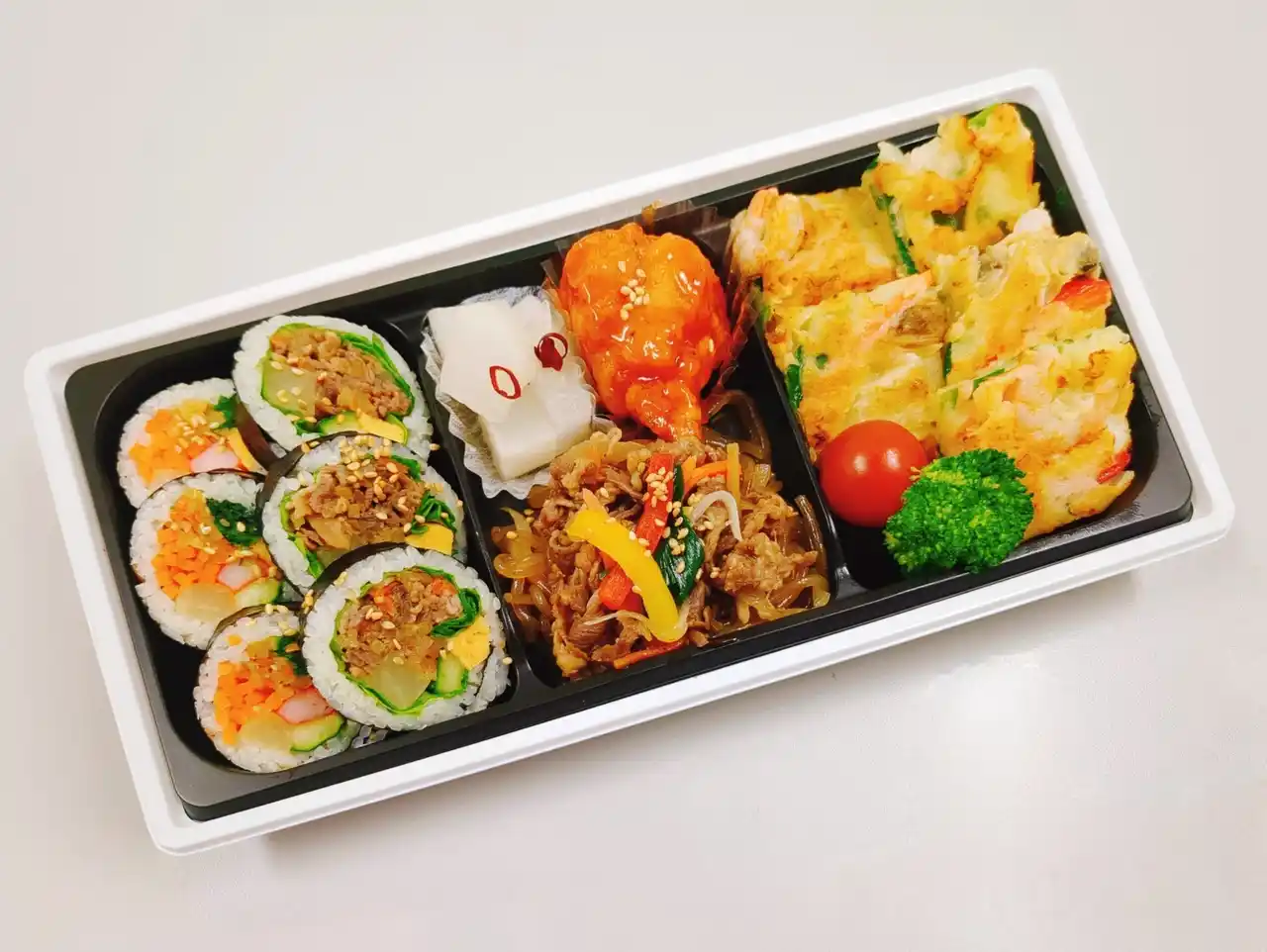 ★手軽にみんなで楽しむオードブルにも!韓国の人気料理がたっぷり キンパ(韓国海苔巻き)、チヂミなど、野菜をたっぷり使った体にやさしい韓国家庭料理のお弁当・お惣菜ショップの「韓美膳エクスプレス」。野菜がたっぷり摂れるキンパ、チキン、チャプチェなど韓国の人気料理のおいしいところを詰め込んだ、人気のお弁当です。 |