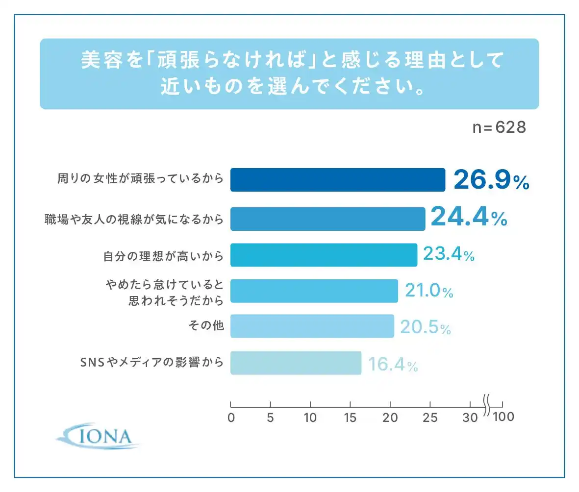 美容を頑張らなければならない理由は、周囲の女性の存在や理想の高さ? SNS・職場・友人の視線などの外的圧力にあるという結果に! |