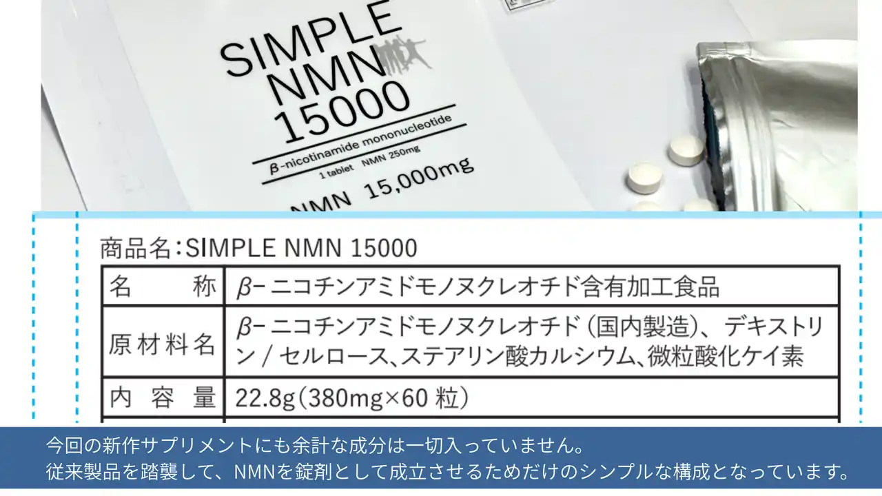 余計な成分は一切入っていない、純粋にNMNに特化したサプリメントです。