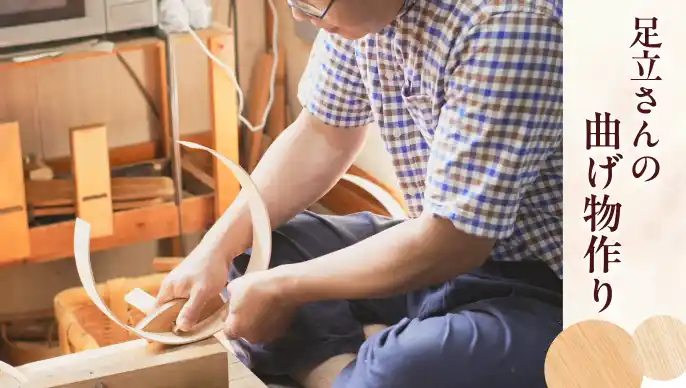 足立茂久商店は元来、木工の「曲げ輪」(篩・裏漉し・わっぱ等)を制作してきた江戸時代から続く老舗工房です。かつて産地として栄えた寺泊山田地区において、現在、同商店は数少ない技術継承者として伝統を守り続けています。 |