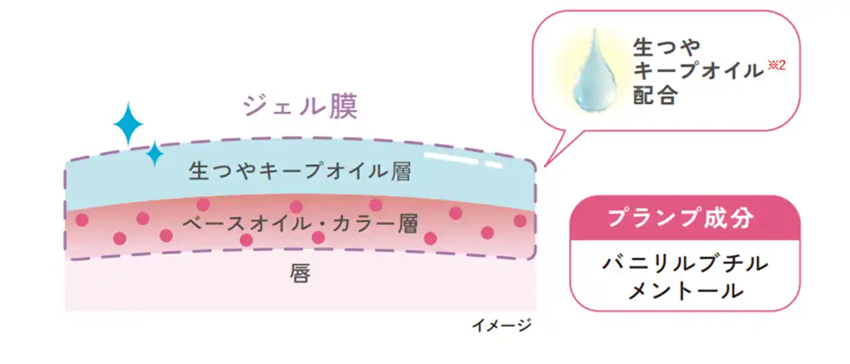 2.ジェル膜処方×プランプ※1効果で塗りたてのむっちり質感・発色がつづく