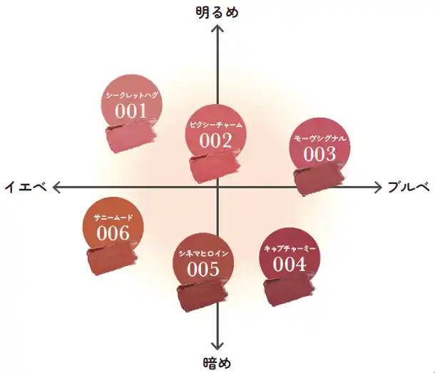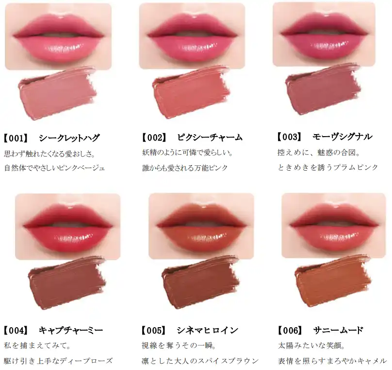 1.自分にぴったりの血色感が見つかる 6色の高発色粘膜カラー |