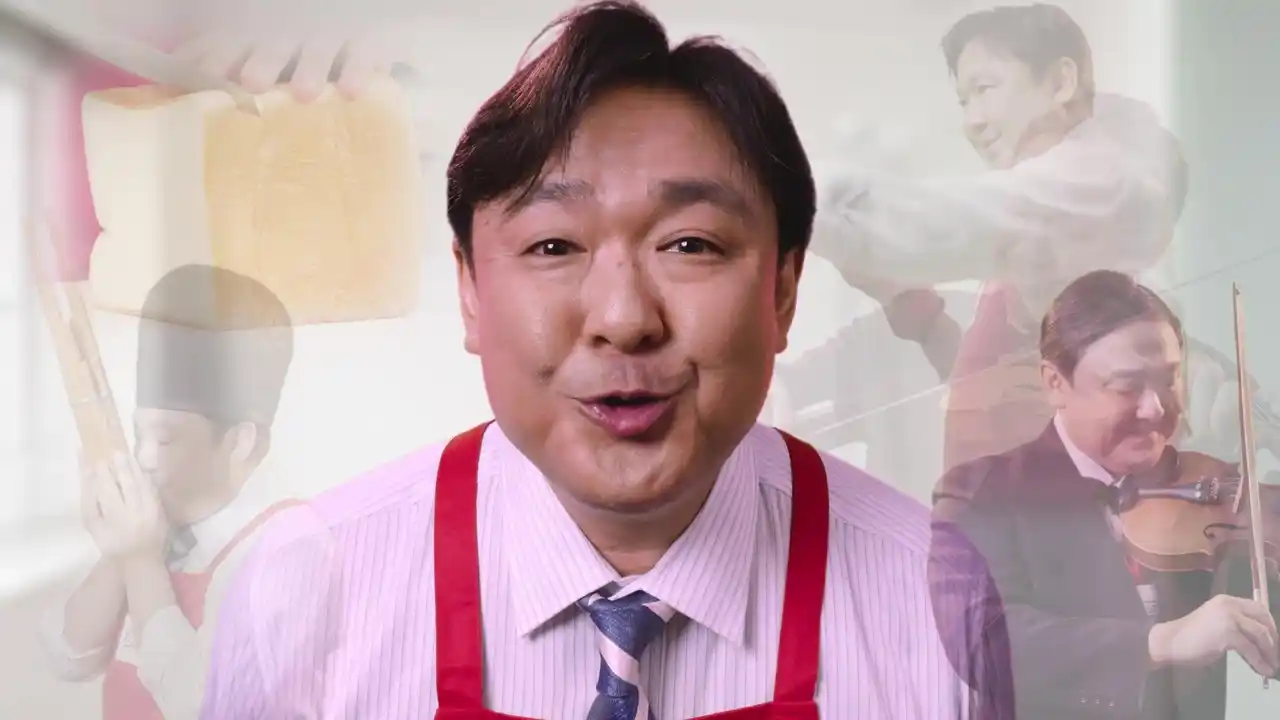 福島さんと石川さんの商品紹介シーンからスタートし、「バスマジックリン エアジェット」シリーズの「シューーーーーーッ」というスプレーの吐出音に合わせて、福島さんが雅楽奏者、ボクサー、オーケストラ奏者といったユニークなキャラクターに次々と変身。広い面にもラクにスプレーできて、“こすらず汚れが落とせる”ストレスフリーで軽やかな使い心地を、多彩な演出でコミカルに描いています。 |
