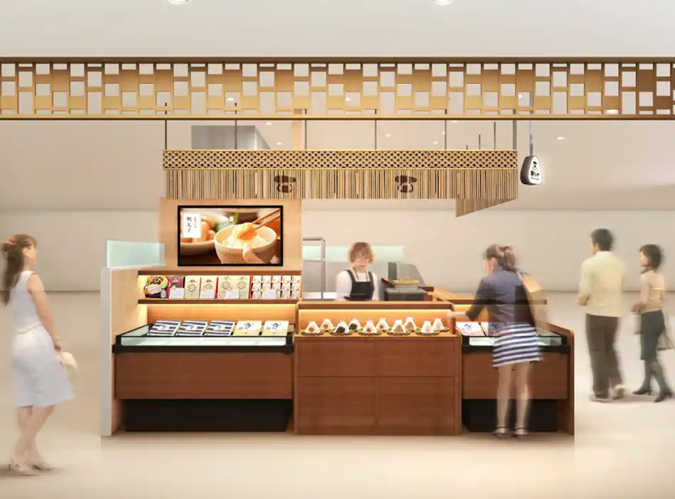 | 博多駅構内1Fの博多エキナカマイング内、スーパーや総菜店舗が集まる食品ゾーンに新たな「おむすび専門店」が誕生します。 |