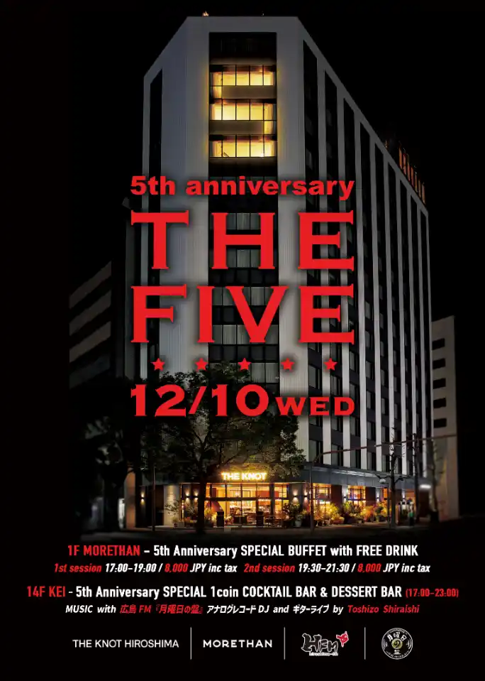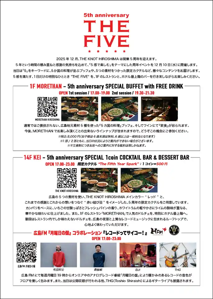 | いちごは、2020年12月10日にグランドオープンしたライフスタイルホテル「THE KNOT HIROSHIMA」において、5周年となる記念イベント「THE FIVE」を12月10日(水)に開催いたしました。 | |||||||||||