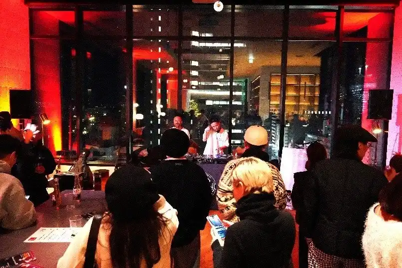 | 室内も赤い照明で染め上げ、また、広島FMのレコード番組「月曜日の盤」とのコラボレーションにより、暖かみのあるアナログサウンドにて5周年の空間を包み込む空間を創り、300名近くの方にご来場者いただき、特別な時間を五感で楽しんでいただきました。 | |||||||||||