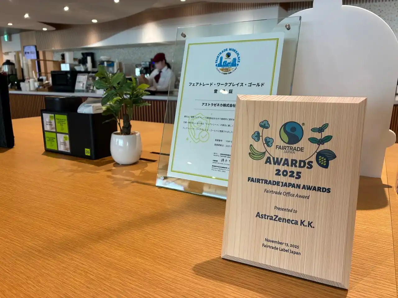 2024年の登録後、2025年にフェアトレード・ワークプレイス・ゴールドへ移行。社内カフェにて国際フェアトレード認証コーヒー、紅茶を使用し、年間2万杯以上提供しています。この取り組みが評価され第2回フェアトレード・ジャパン・アワード(2025年11月)ではフェアトレードオフィス部門にて優秀賞を受賞しました。