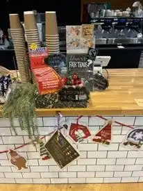 販売コーナーには、オリジナルのPOP「What’s FAIR TRADE?」の説明ボード、フェアトレード・ジャパンの公式リーフレットを設置し、購入時に自然とフェアトレードを学べる場をつくっています。季節の飾り付けや写真映えするディスプレイも好評で、 カフェを通じて社員同士がフェアトレードの話題を共有する機会も増えました。今後も、カフェを情報発信の拠点として、社員が“選ぶことが社会につながる”体験を継続的に提供していきます。」 |