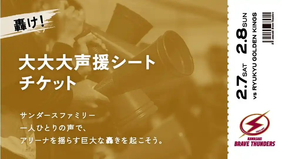 サンダースファミリーの大声援を集結して、勝利を掴み取ろうという企画シートです。当日周辺エリアでの最大デシベルを計測して後日発表いたします。試合開始から終了まで、皆さんの大声援でチームを後押ししてください!