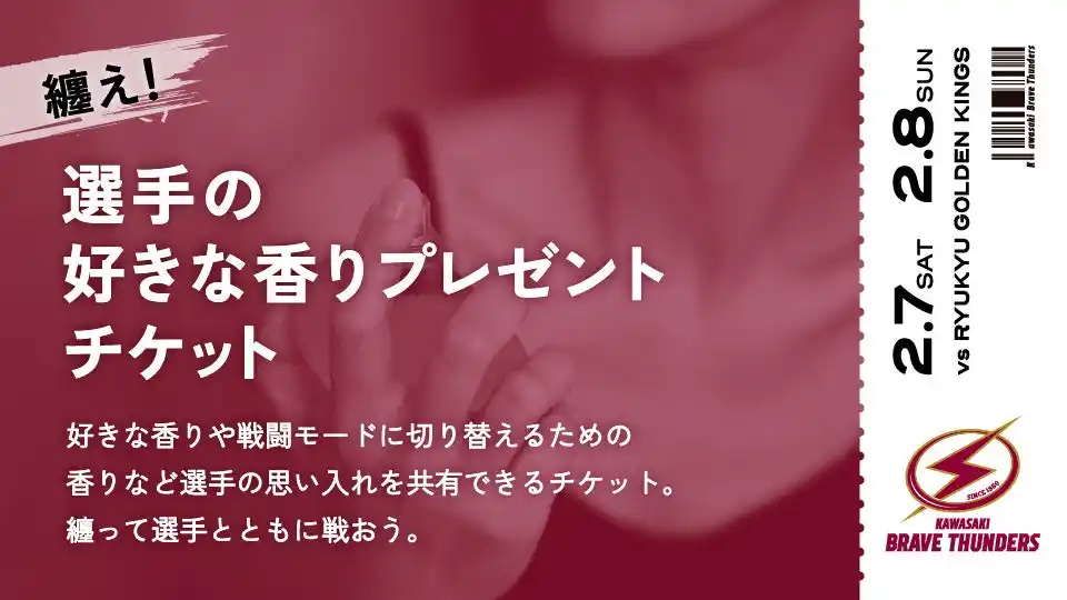 選手の「好きな香り」や「戦闘モードの香り」など、思い入れのある香りを体験できるチケットです。サンダースファミリーの皆さんの好きな選手について、もっと深く知っていただける貴重な機会です。 |