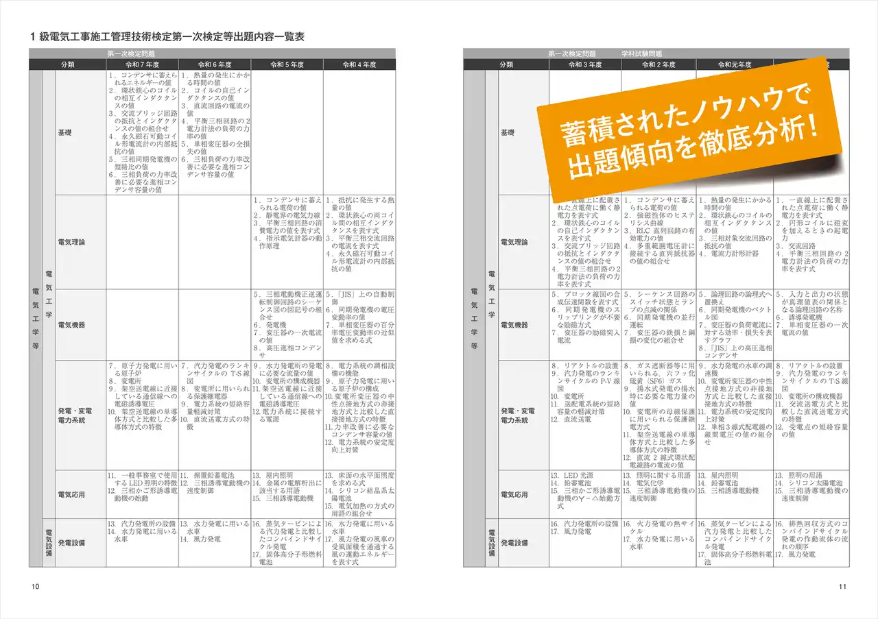 『1級電気工事施工管理第一次検定問題解説集2026年版』を発売します。1977年から48年間、施工管理技士の受検講習会を開催し累計約99万人の受講者をサポートしてきた実績をもち、受検者・合格者から高く評価されているロングセラーの過去問題集最新版。令和8年度の第一次検定を受検する方は必携の一冊です。 |