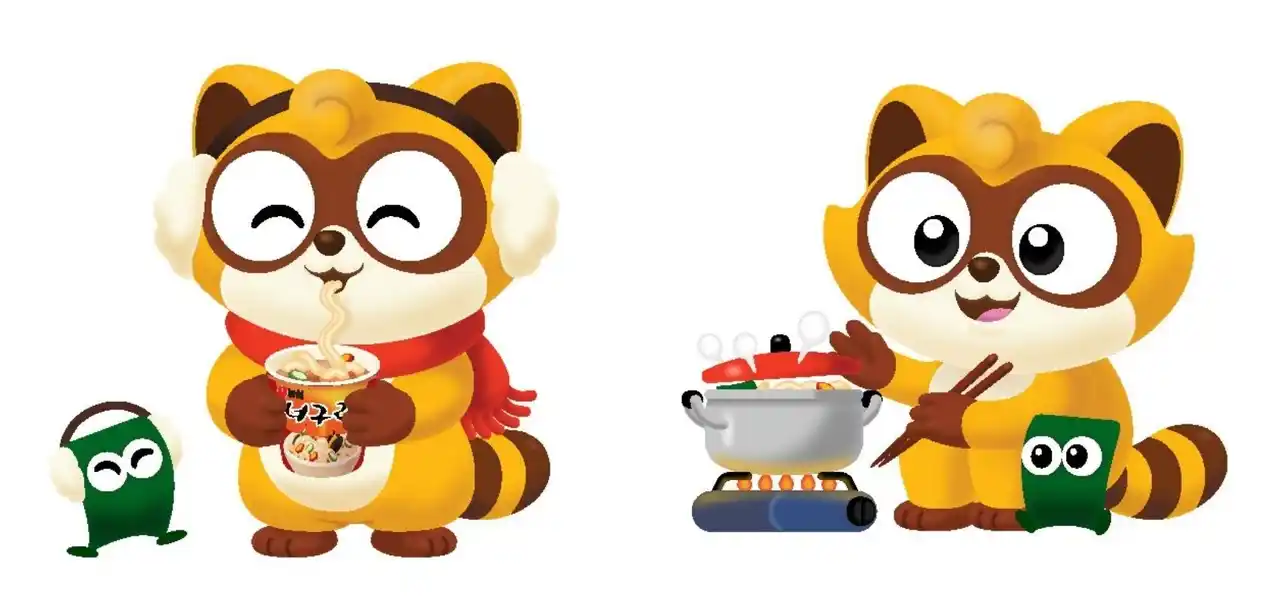韓国語で「たぬき」を意味する「ノグリ」くんは、温かい感性を持ち、ラーメンに対する強い職人魂を持っているキャラクター。情熱にあふれる一方、ときには人生の憂いに浸る感傷的な一面もあります。 |