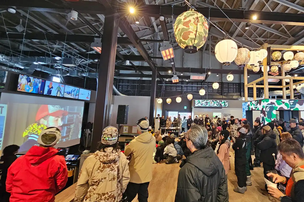 2025年12月6日(土)、北海道・札幌国際スキー場で、A BATHING APE(R)と倉石一樹によるコラボレーション「BAPE(R) × KAZUKI KURAISHI」のスノーボードコレクションの発売を記念したイベントが開催された。 |