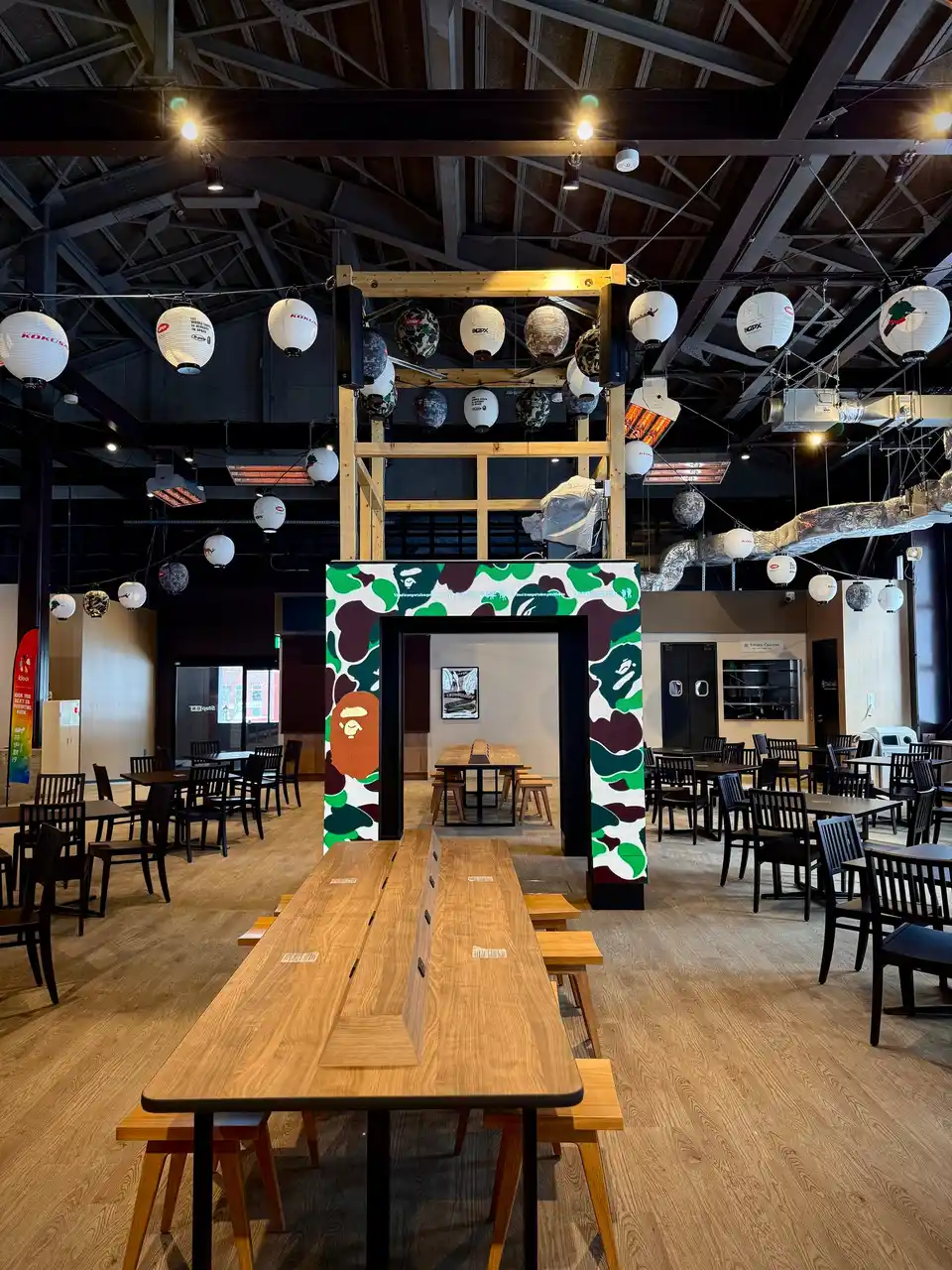 イベントのメイン会場となったLounge The 6では、会場中央にサイネージやぐらがそびえ立ち、 UAP CAMOとABC CAMOのデジタルサイネージが投影されていた。 やぐらの周囲には、コラボレーションの特別デザインが施された提灯が吊るされた。 |