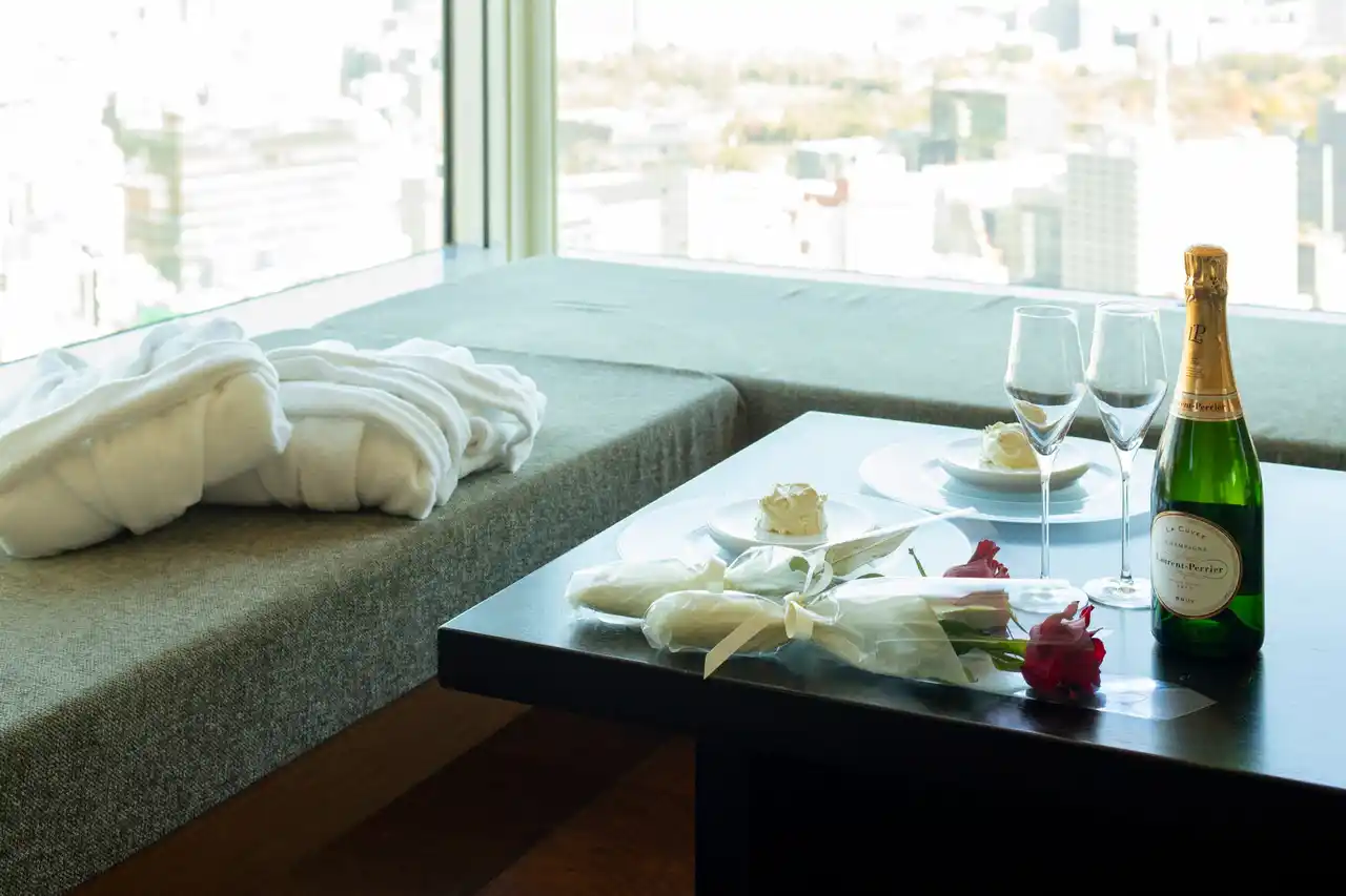 また、上質なローブやインナーウェアは、お二人の思い出として宿泊後もそのままお持ち帰りいただき、旅の続きを楽しむことができます。洗練されたアートのような空間で過ごすゆったりとしたひとときは、バレンタインデーやホワイトデーなど大切な人と過ごす記念日にもおすすめです。 |