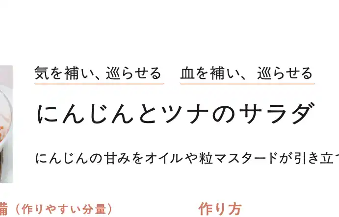 薬膳においては食材それぞれにさまざまな効能がありますが、本書ではレシピごとに強く意識した効能を、平易な言葉で明記しました。体調に合わせてレシピを選ぶこともできますし、作りおきですから、作っておけばいつでも気軽に食べられます。 |