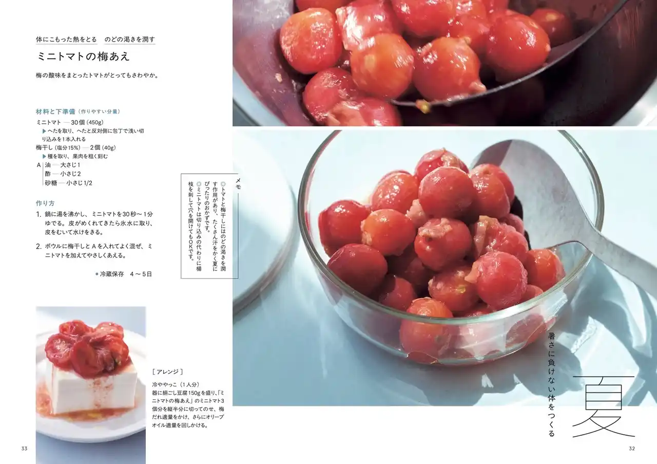 使う食材はおなじみのものばかり。難しい調理法もなく、いつもの料理と同様に作ることができます。それでいてそれぞれのレシピには著者・西岡さんならではの工夫があり、薬膳的な効能を摂り入れながら、新鮮なおいしさを味わうことができます。 |