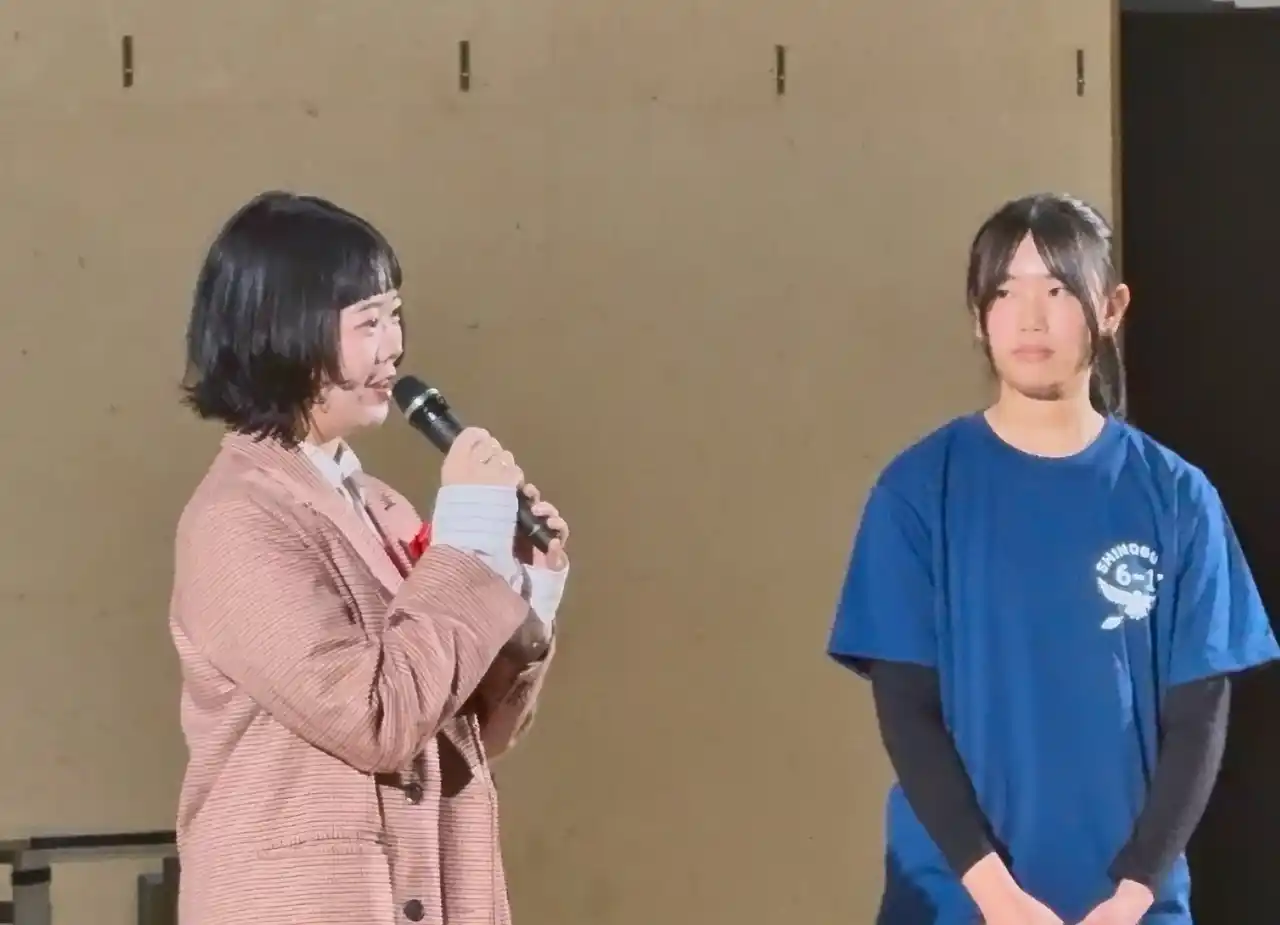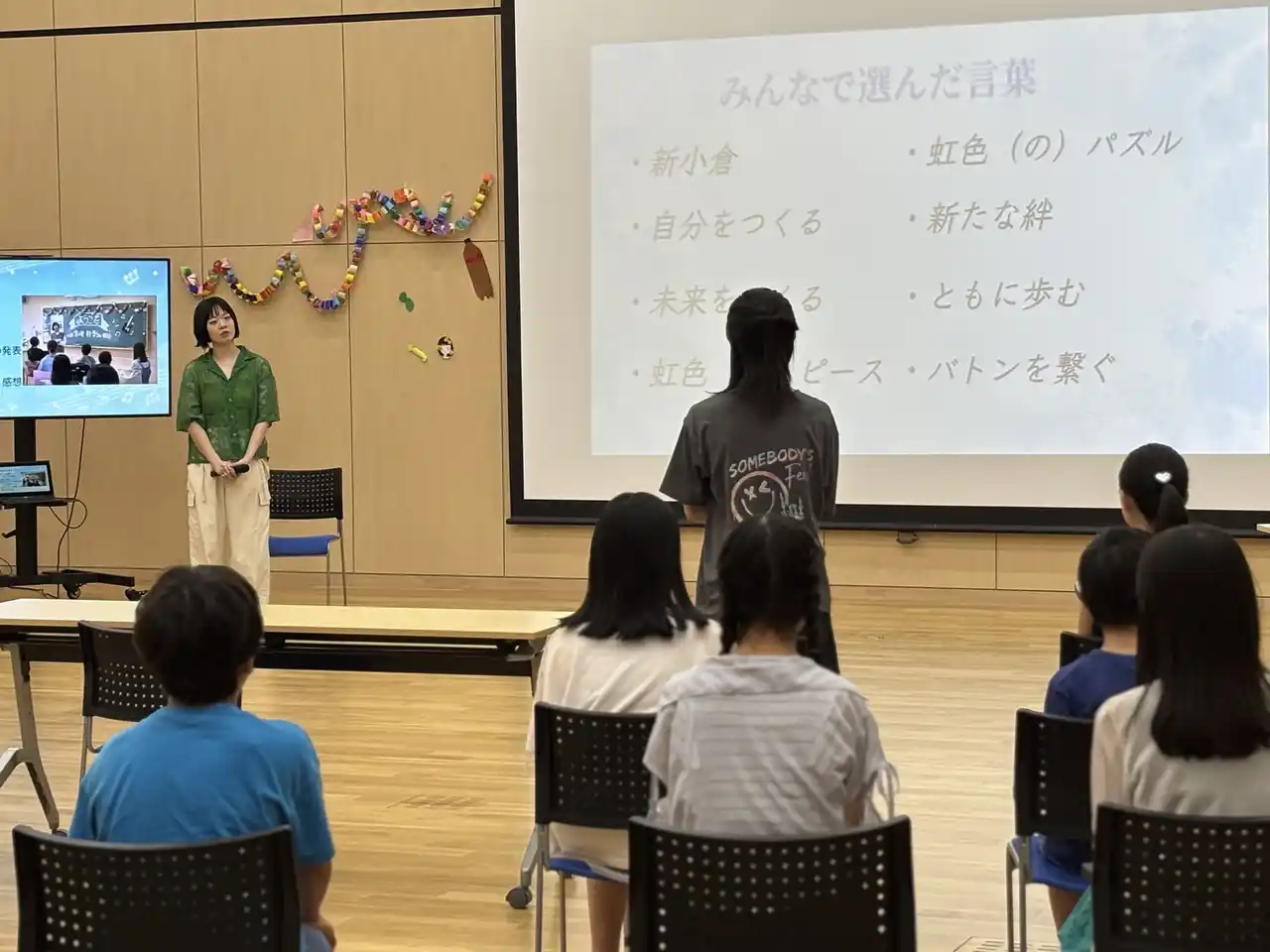 4年生の発表 「夢色 和菓子プロジェクト」 5年生の発表 「未来会議~Win-Win Time⏳~」 宮崎さん入場 6年生の発表「未来へのメロディー~0から創るわたしたちの校歌~」 全校児童による校歌斉唱 |
