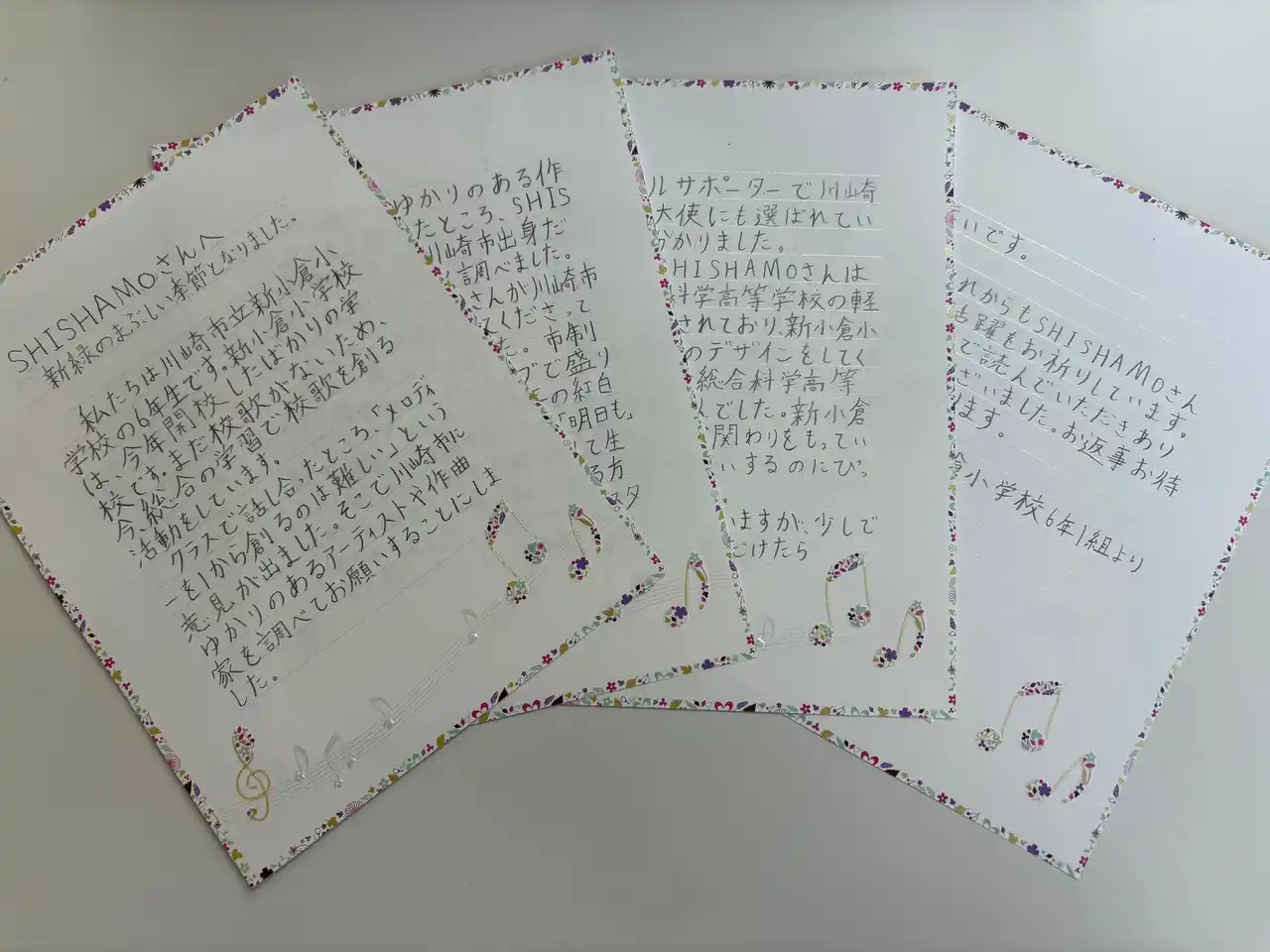 ・児童から、宮崎さんへ「校歌づくりのお願い」に係る手紙を送付。 |